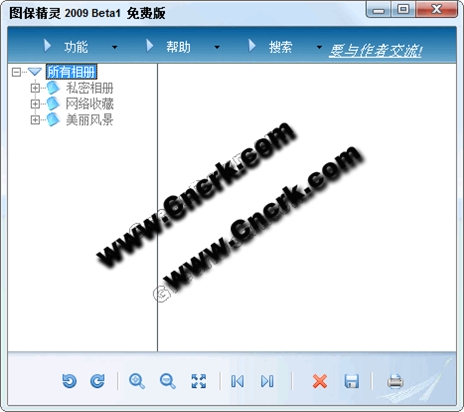 图保精灵2009 Beta1 简体中文绿色免费版 图保精灵2009是一款能够全面保护您私密相片安全的实用免费工具,它最大的特点就是使用数据库来永久保存相片,全过程只生成一个相册文件,大大方便您对相片的管理,本工具并非用普通的图片加密算法来加密,您可以为您的每一个相册设置一个访问密码,对该相册的所有操作,只能通过该密码才能访问,极大限度地提高了相片的保密程度,最大快人心的是本软件提供永久免费