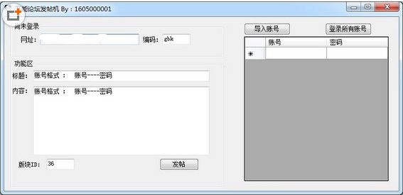 1、解压缩运行软件2、导入帐号,设置发帖内容