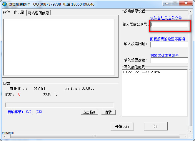 第一步:请填入有投票活动的公众号,软件自动关注。第二步: