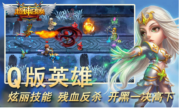 1、精致画面:使用3D制作,Q版英雄造型,绚丽技能特效