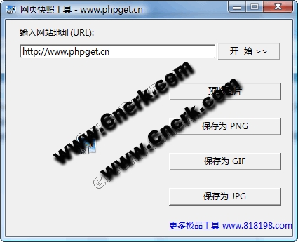 网页快照工具 是一款非常简单和容易使用的免费截图工具。截取网站只需要输入网址后一次点击就可以完成。支持多种图片格式,支持图片预览,完全绿色和免费