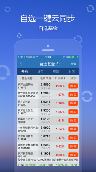 4. 自选基金: 登录通行证,让你哪里都能浏览自选基金