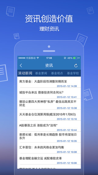 6. 基金资讯: 随时随地获得最新业内动态和理财资讯