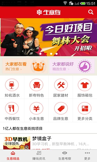 找生意没头绪?好商机恐错过?做生意怕被骗?生意街做您大后台。APP上的每一个项目均纳入生意街先行赔付创业保障计划,让创业再无后顾之忧!