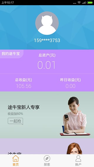 1.途牛宝新人专享,从3月31日起,用户首次购买途牛宝之日起之后的30天内,所有途牛宝交易产生的收益,加成60%.2.途牛宝:精心打造的现金理财产品,超额收益,随时方便转出至绑定的银行卡,方便灵活.
