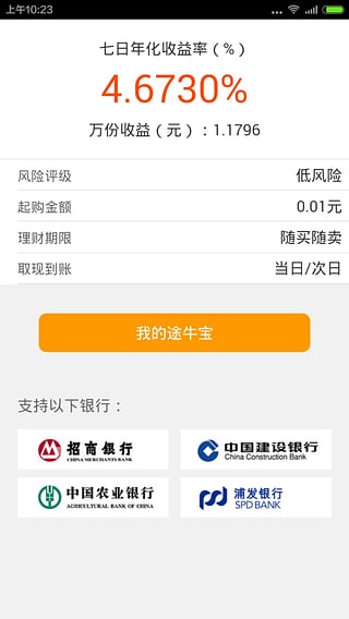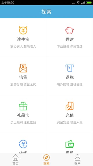 途牛金融,致力于服务于途牛生态圈链,向供应商及消费者,提供多元化的互联网金融服务。途牛金融在半年时间内,陆续推出了面向供应商的融资服务:牛业贷、面向对私消费者的融资服务:牛客贷、购物退税、礼品卡、外币汇兑等金融产品,旨在以用户体验为出发点,不断创新出更多符合用户需求的互联网金融产品。【软件特点】