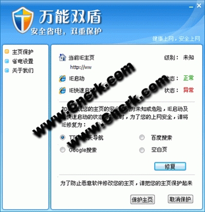 万能双盾是一款中文公益软件,它有双重保护功能:保护您的IE主页及为您节省能源。为了您健康上网,安全上网双重护航。
