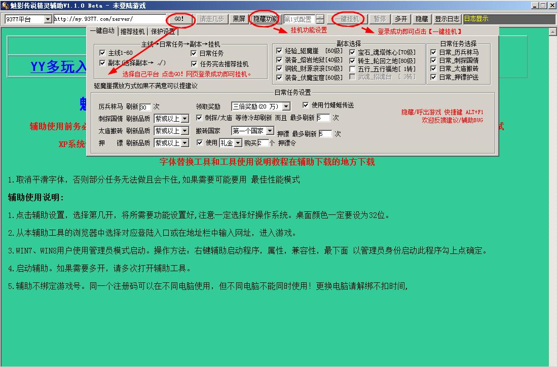 魅影传说精灵辅助是魅影传说游戏中的辅助工具。该工具不仅小巧绿色,还拥有强大的游戏辅助功能,可以帮助玩家自动完成日常任务、主线、副本等等游戏事件。