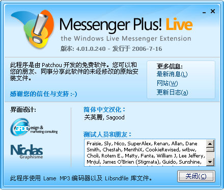Messenger Plus! Live V5.11.760 多国语言官方安装版 Messenger Plus! Live是一款可以为MSN加上一系列的方便的功能的软件.比如保存历史纪录、使用IRC命令、隐藏广告栏等等,大大的增强了MSN的功能.主要功能:聊天记录自动 保存/好友动态全面追踪/轻松管理联系人/文本格式由我定/你的长名我截短/强大的发送功能/自定义快捷文本/Appearance(外观)选项 /Text Recall(文字召回)选项/Contact Sounds(联系人声音)选项.