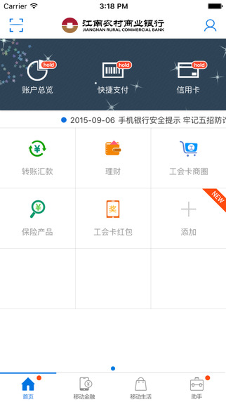 软件为您提供实时、高效的账户和资金管理。提供包括我的账户、转账汇款、储蓄服务、安全中心、客户积分、投资理财、信用卡、无卡取款、银联商圈、抽奖活动、贷款服务、快捷菜单、网点及自助设备查询等金融服务。本软件支持的固件版本为IOS4.3或更高版本。江南农商iPad客户端全面支持IOS8系统;同时新增水费缴费功能,无需再去网点办理;优化登陆账户输入框,确保您的账户安全。