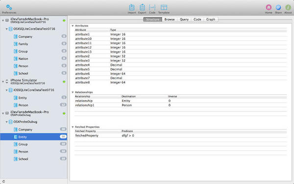 3.使用Core Data 框架,您可以创建一个托管对象模型,它为您的应用程序所使用的模型对象,即实体提供了抽象定义.这种实体-关系模型是采用 Xcode 的“数据模型设计”工具定义的,该工具为模型实体以及它们之间的关系提供了内容丰富的环境。