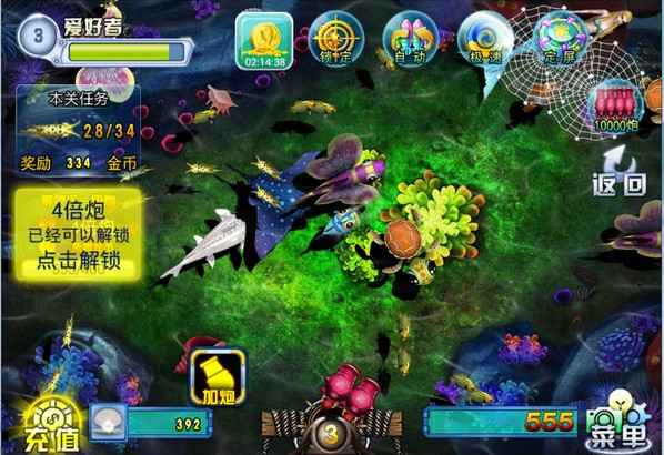 您只要控制鱼炮,发射炮弹,攻击游动的各种鱼类,完成成就,赶快来体验一下街机捕鱼带来的快感和刺激吧。