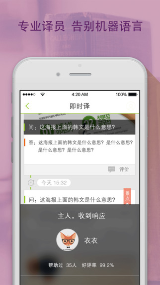 1)真人小秘书,专业翻译官;2)图片拍照、语音录入、文字,均能完美支持;