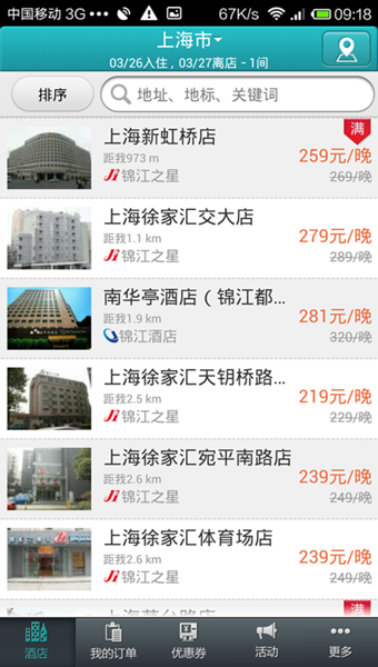 智能酒店排序,帮你找到最近最便宜的锦江之星