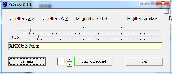 7、数字代表产生密码的个数,如果大于1,上方不显示,只能生成后点击“copytoclipboard”拷贝到剪贴板;