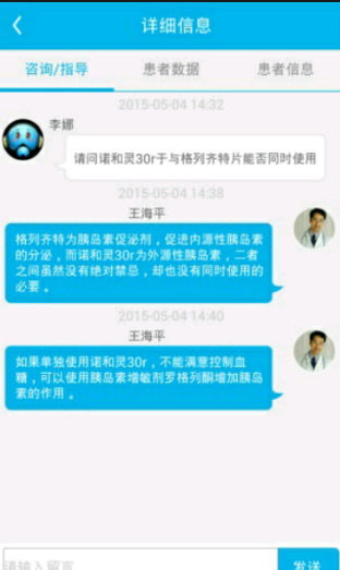 怡诺医生是专门为医生开发的一个帮助医生管理院外患者的APP应用,医生注册登录“怡诺医生”开通在线服务后,患者即可在用户端购买医生服务。医生通过怡诺医生可以实时查看患者院外的血糖、血压数据,饮食、运动、服药情况和健康档案,并及时对患者进行健康指导。【软件特点】