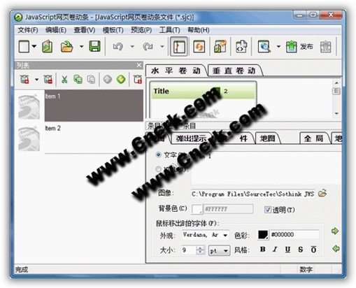Sothink JavaScript Web Scroller V2.1.90218 汉化绿色特别版 Sothink JavaScript Web Scroller可以在网页内添加实用吸引人的卷动条,不用写一行JavaScript代码。效果比传统的"走马灯"要好,有很多新功能
