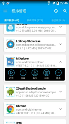 手机程序管理软件能够对手机内的APP进行管理,分享。支持拼音搜索,列表支持多种排序方式,批量备份apk到sd卡,自定义备份文件夹等。部分细微场景添加了灵动、轻巧的小动画,使得程序显得活泼有趣的同时又不会干扰用户的正常使用。