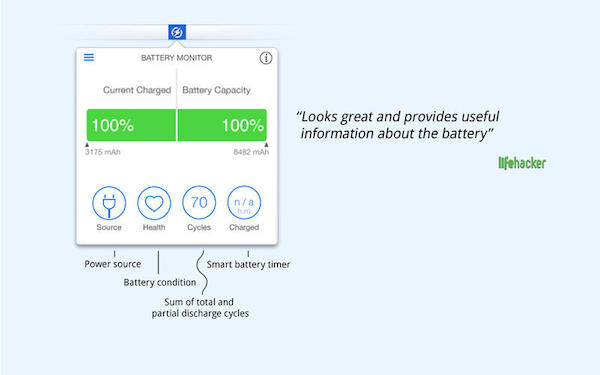 - 支持以曲线图表直观显示电池使用情况。