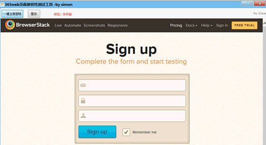 打开浏览器兼容性测试工具后,可以选择一键注册登陆或者自行注册登陆,注册成功后会跳转进入页面测试。