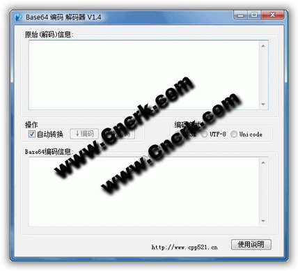 一个很好的Base64编-解码工具.转换很方便,支持中文,支持UTF-8,Unicode编码方式.