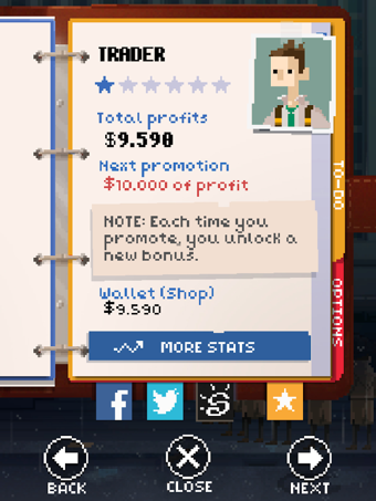 证券交易员安卓版是一款像素风格的模拟经营类游戏,游戏中玩家将进入一家大型的证券公司做一名证券交易员,你每天都要重复着枯燥而乏味的交易工作。游戏的玩法很简单,玩家只需滑动屏幕中出现的各种投资报告即可进行审核,不过一定不要审错了报告,否则就会给公司带来利益上的损失。