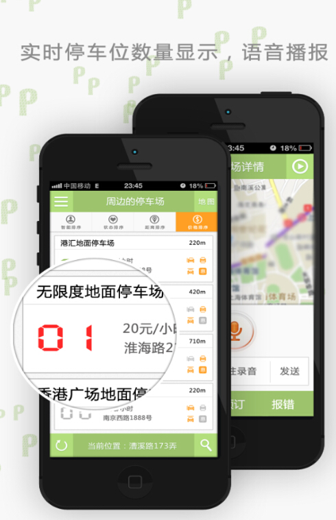 1、自动搜索当前位置周边的停车场2、实时停车位数量显示,语音播报