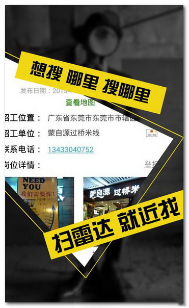 【 招工 】 你还在为招不到员工而伤透脑筋吗?你还在为员工流失而苦苦烦恼吗?拥有招工雷达,这都不叫事儿!几分钟发布一条招聘信息,周围成千上万的求职者将会踊跃报名!