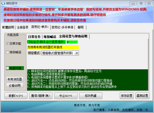 3、启动脚本:点击启动按钮后迅速将鼠标移动到游戏界面,按回车键确定,辅助将自行启动