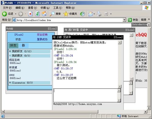WebQQ2009是免费的,开源的,为所有研究WebIM和互联网通讯协议的爱好者而做。同时,WebQQ能够让你在具有网页浏览器的任何系统平台上都能使用QQ与你的好友在线聊天,方便快捷!