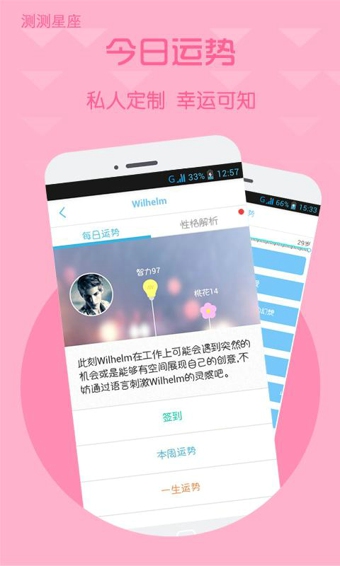 测测星座结合你独一无二的个人星图以及宇宙星象推算出专属你的每日运势、本周运势、一生运势。
