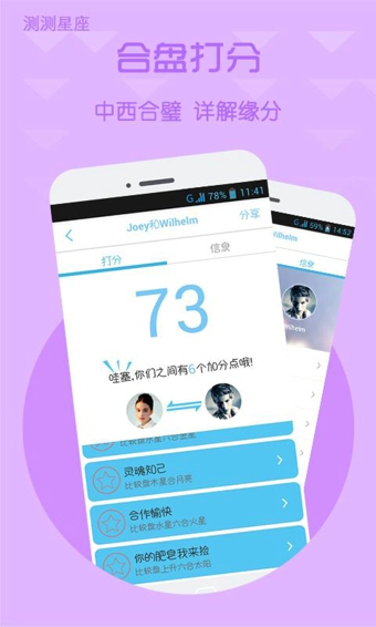 输入更多好友信息,轻轻一划,便可洞悉两人关系与缘分。依据精密算法,推算神秘分数,史上最准连连看。