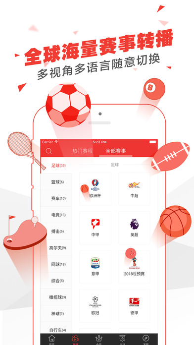 全球赛事尽在掌握坐拥全球海量赛事版权,覆盖17种运动、121项赛事,全年超过4000场比赛视频直播。