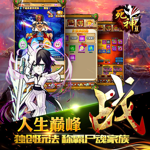 《死神2》100%忠实于原著中经典热血的动漫剧情,创新引入动态人物卡牌概念,华丽特效神还原那些恢弘霸气的经典战役,让你闪回现世,缔造属于你的死神军团!满足你的战意!首款国民PVP死神动漫手游——《死神2》全新资料篇“卍解重生”盛装来袭!限时奖励双倍,快来与黑崎一护一决高下!《死神2》推出全新资源矿玩法,PVP群战,决斗商店,于竞技场横扫整个尸魂界;圣诞时装,华丽出炉,打造不同以往的霸道军团;上线期间,活动奖励翻倍,斩魂卍解,对决蓝染,带你重温经典对决;动漫停更,但死神的故事在这里延续…