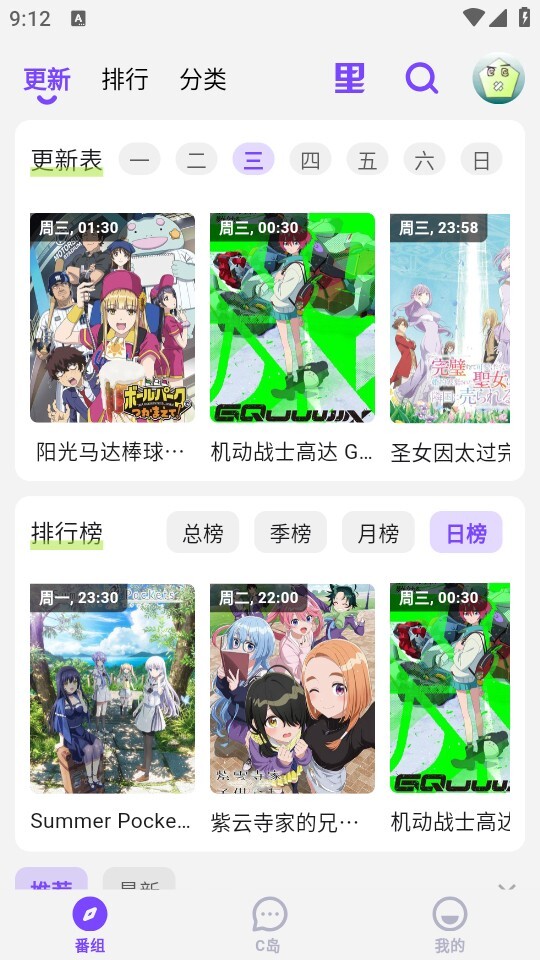 2. 每天更新超高清动漫: