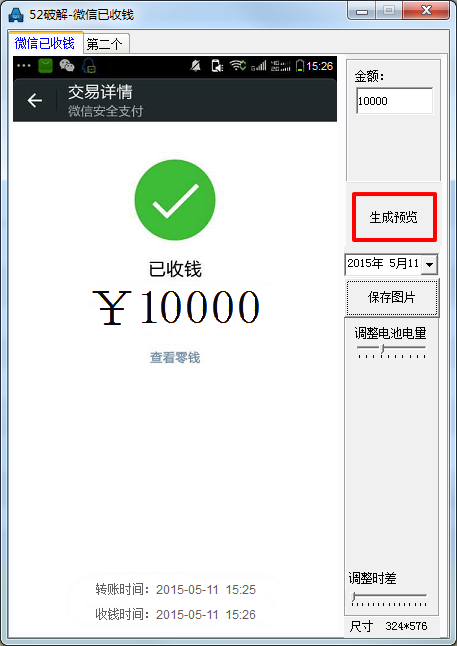 微信已收钱截图工具 1.0 破解版 微信交易生成器可谓是一款装逼神器啊,它可以自定义微信交易界面上的金额、时间、手机电量,只要设置完成点击确认即可轻松完成张虚拟的微信已收钱截图,方便又快速,还可以提升你的逼格。