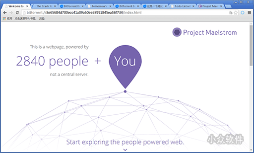 Maelstrom浏览器和BT一样,一定要有尽可能多的人打开电脑,维持这个页面,如果这些人都下线,这个页面也将不复存在,但在同时在线人数足够大的时候,下线将变得越来越不可能。BitTorrent给这个全新的浏览器起了一个很酷的名字——Maelstrom(漩涡),似乎意为未来每个人生产的内容才是真正中立的、能够连接一切的互联网,而不是像今天这样,仍然要靠一个个网络平台来做中心。
