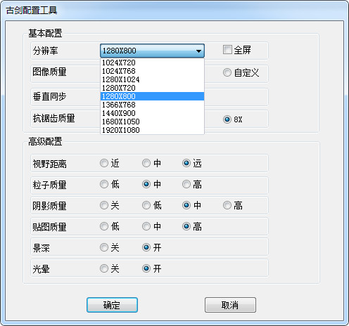 古剑配置工具下载 v1.0 绿色版 古剑配置工具(古剑奇谭分辨率设置工具)是角色扮演游戏古剑奇谭的强大配置软件,本软件可以代替游戏自带的配置工具,同类的软件,更强大的功能,让你更好地配置游戏和更好地体验游戏的效果,如对游戏自带的配置功能不满足的玩家欢迎下载本配置工具使用。