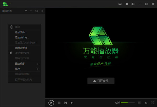 1、首先打开爱奇艺万能播放器,然后在其界面点击“打开文件”并把想要重复播放的视频添加进来;