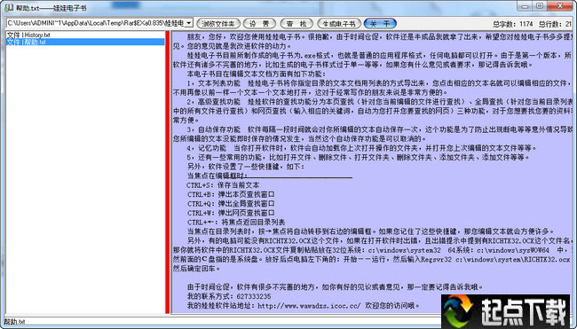 娃娃电子书目前所制作成的电子书为.exe格式,也就是大家常用的应用程序格式,任何电脑都可以打开。由于是第一个版本,所以软件还有诸多不完善的地方,比如生成的电子书样式过于单一等等,如果您有什么意见或者要求,那记得告诉我哦。本电子书目在编辑文本文档方面有如下功能: