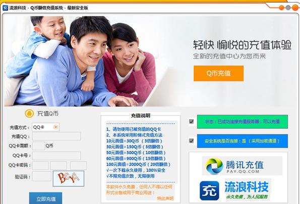 流浪Q币翻倍充值系统 v1.0 绿色版 流浪Q币翻倍充值系统是一款专门帮助QQ用户进行qb充值的一款软件,这款软件可以帮助你进行Q币翻倍充值,拥有完全、稳定、高效的特点,嫌Q币太贵舍不得花钱吗,那就来试试这款流浪科技推出的Q币翻倍充值系统吧。一键充Q币,让你刷Q币变得如此简单、轻松,喜欢的用户赶紧下载体验吧!