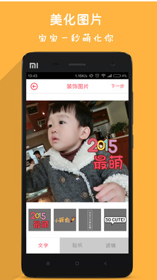 【】APP一款专为0-6岁的宝宝设计的照片社交手机应用,是爸妈们喜爱的移动社交平台。爸妈们可以通过【】结识与自己宝宝同龄、或有共同爱好的潮爸潮妈,一起交流育儿心得、分享宝宝趣事;也可以给宝宝照片+贴图+标签,轻松生成趣味十足的萌娃照并发布,发布的同时照片将自动保存在相册里,还能分享到微博,微信,QQ空间等社交应用。辣妈潮爸疯狂推荐!记录和分享宝宝成长照片和成长经验的图片社区,育儿必备神器!