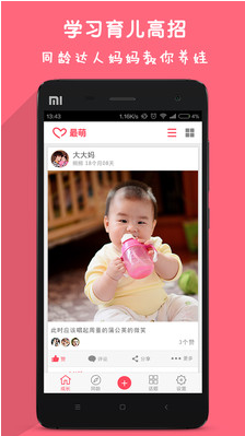原创社区内容,更新及时,分享互动;备孕怀孕,孕育宝宝,养娃晒娃,亲子写真,照片涂鸦,早教游戏···更多欢乐来自-最萌宝宝!