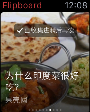5. 支持 Apple Watch:时时推荐与你最息息相关的10篇热门内容精要,并能将你喜欢的内容收集进个人杂志或分享给好友。