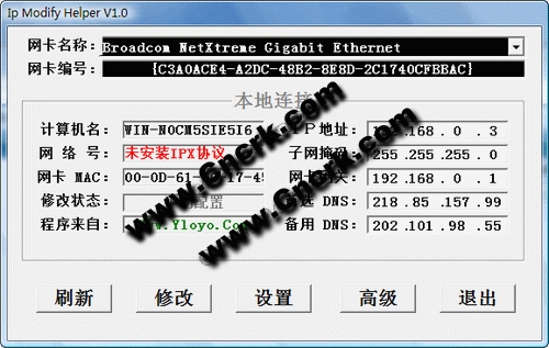为了减少支持库,缩小程序体积,可以去掉部分功能,如取消MAC的获取,换IP编辑框为普通编辑框等,这里不一一叙述!