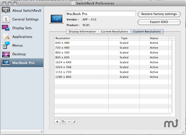 修正会导致SwitchResX记住几十个决议而处于非活动状态显示导致越来