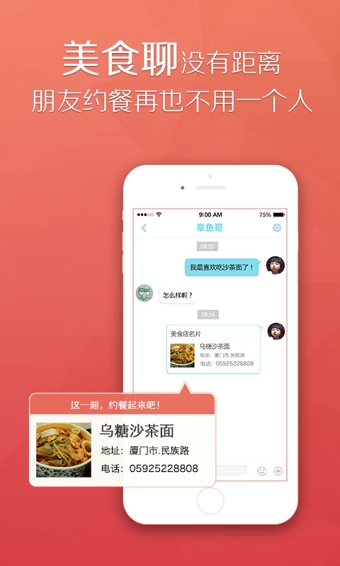 情人约餐、朋友聚餐、商务宴请…去哪里吃饭呢?美食聊让你轻松应对,美食店名片让你快速了解美食店信息。约餐,就是这么简单。