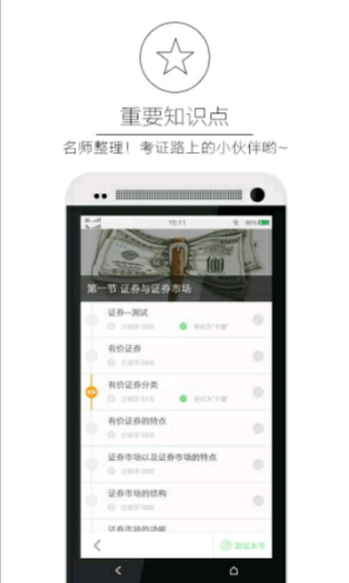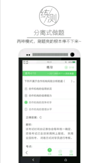 考证宝主要以职业认证考试为切入点,提供了众多考试科目,如:证券、银行、建造、会计等等。考证宝的内容极具实用性,既囊括了所有职业认证考试科目的知识点、考点,也涵盖了所有的历年考试真题、模考等。