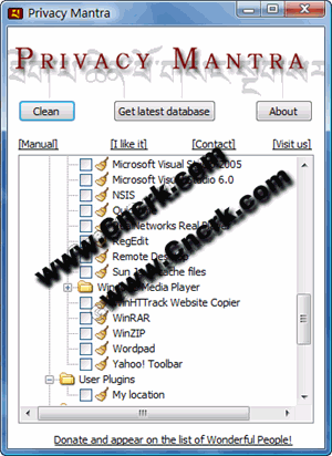Privacy Mantra可以清除电脑上的上网痕迹,它可以清除的内容包括上网历史、缓存、cookies、index.dat文件、自动完成表格功能、搜索助手、最新打开的文档等方面。它还可以从网上下载最新的数据库,以防止隐私泄露