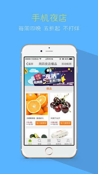 1、天天惊喜:多款低价商品随时更新,每月客户端专享优惠活动,环球美食触手可及。2、条码扫描:全新优化扫描购功能,扫描商品条形码,即可了解商品信息和轻松下单,真正做到天下美食,一手掌握。